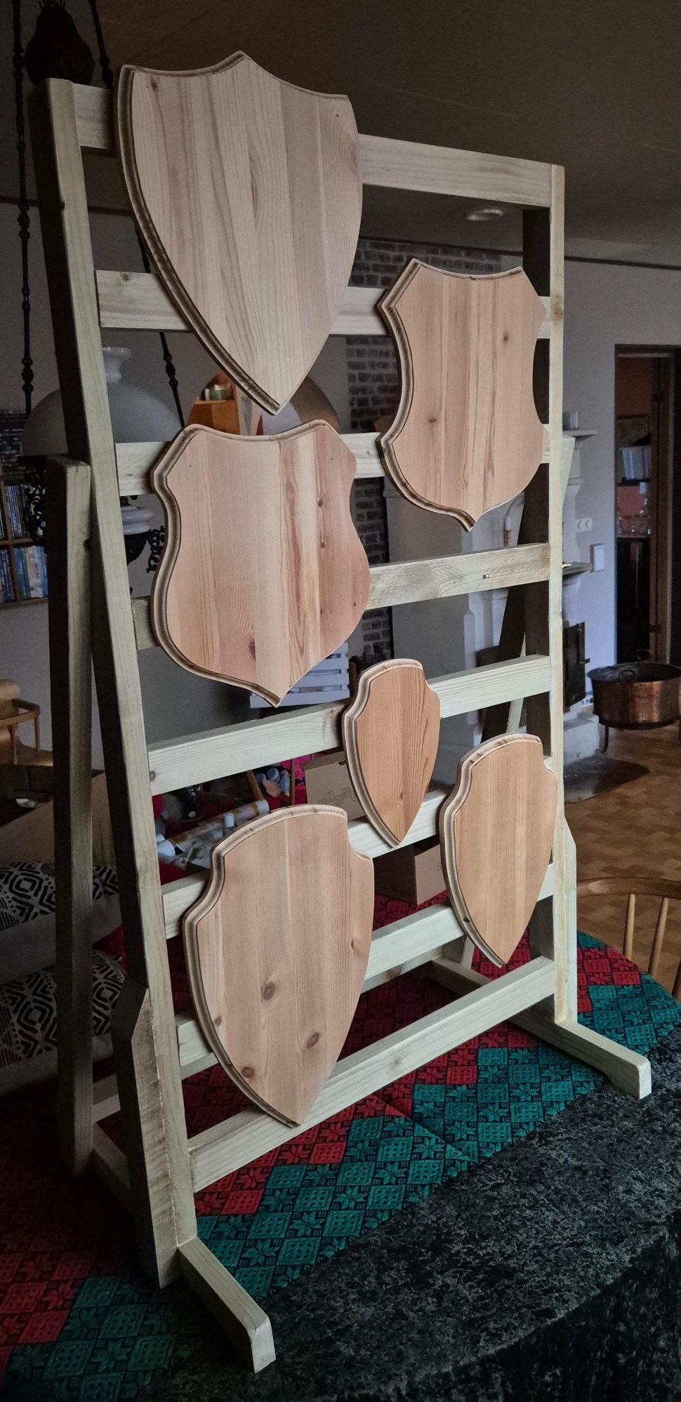 Materialet till produkterna kan komma ifrån återanvänt byggmaterial, t.ex. hyllplan, bänkskivor och reglar.