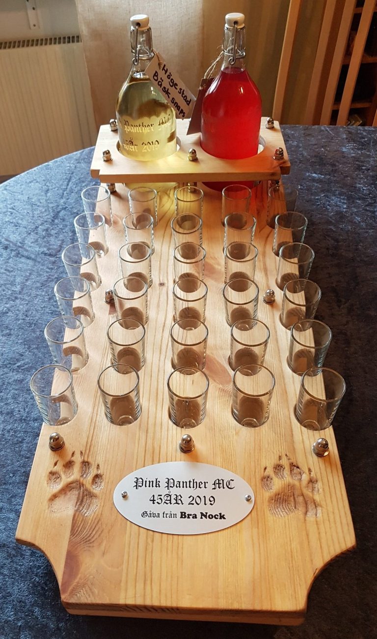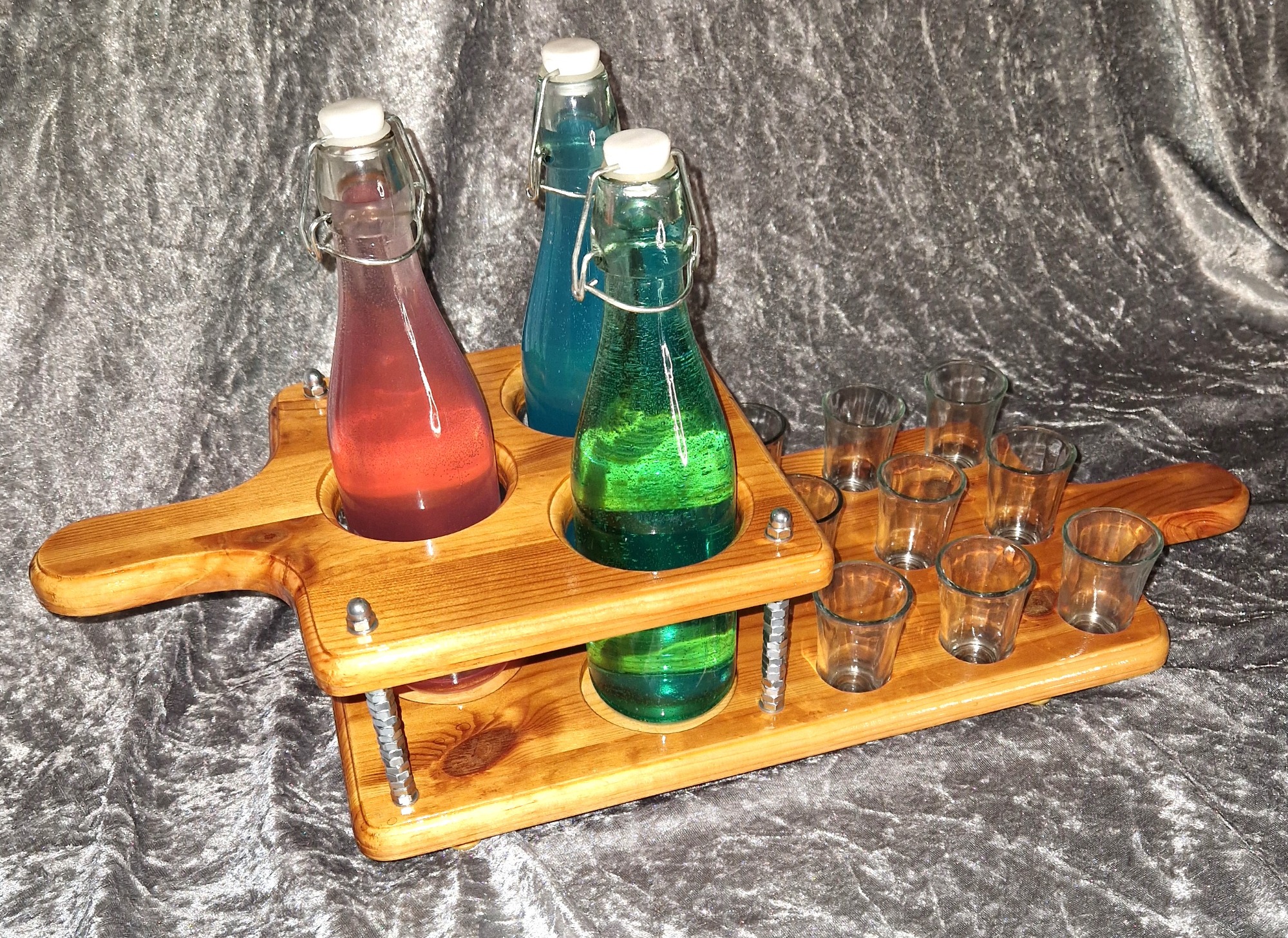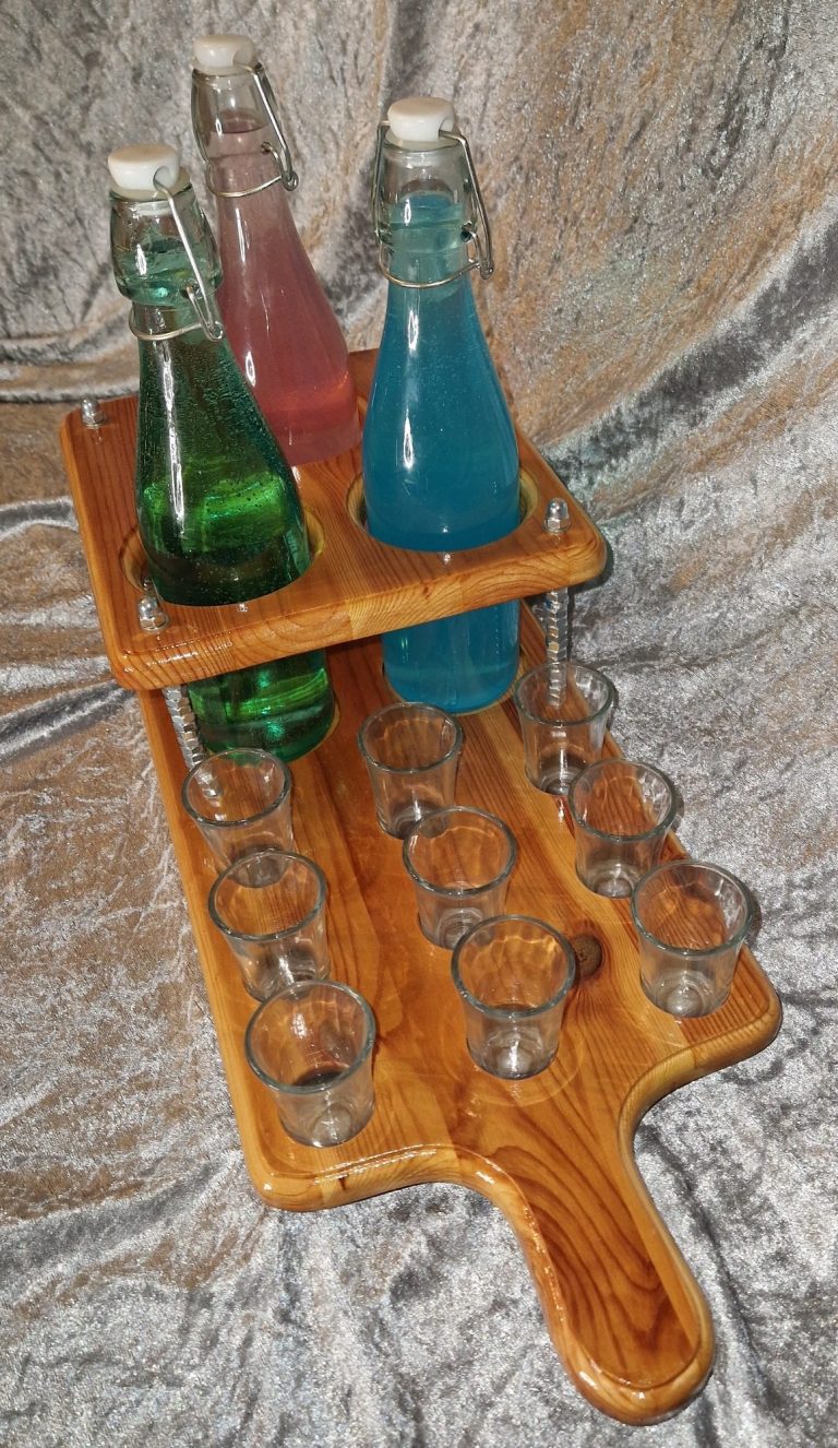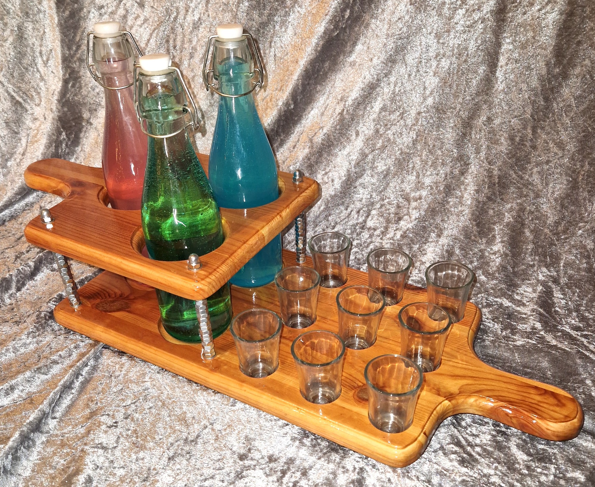 Alla snapsbrickor levereras med flaskor (tomma) och glas.